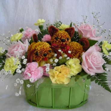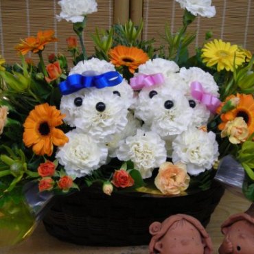 いつも新鮮な切り花と高品質な鉢物の提供が出来る花屋を心がけています。また、カーネーションやピンポンマムを使った動物アレンジ・キャラクターアレンジも好評です!動物やキャラクターのリクエスト、ペットをモデルにしたオリジナルのアニマルアレンジもお作りします。お客様のご要望をどんどんお聞かせください。ペットの肖像画にプリザーブドフラワーを飾ったオリジナルプレートやテラコッタにペットの肖像画を描いてアレンジメントもお作りします。世界に1つだけのオリジナル商品をお届けします。